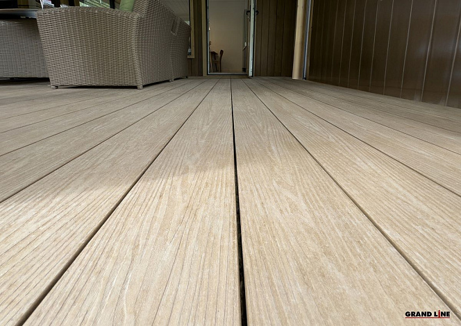Террасная доска Grand Line 3D Винтаж — двусторонняя прочная доска с выраженной глубокой фактурой, идеальное решение для обустройства уличных террас, детских площадок, беседок, веранд и зон отдыха. Материал не требует ухода, ежегодного окрашивания и дополнительной обработки, сохраняя привлекательный внешний вид на долгие годы.